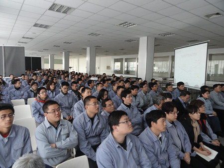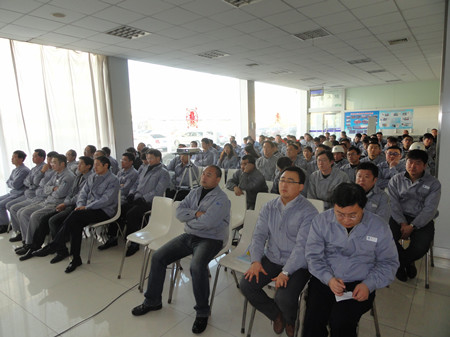 王總在講話中用詳實(shí)的數(shù)字,明晰的圖表,做了細(xì)致地分析和總結(jié)。對2012年之前的工作做了主觀和客觀的原因分析。在2013年的工作總結(jié)中,王總用成績和不足來概括:在2013的工作中,營業(yè)工作取得比較突出的成績,取得了訂單創(chuàng)新高;百萬機(jī)組項(xiàng)目100%容量訂單的簽訂等亮點(diǎn),特別可喜的是,在EPC印尼項(xiàng)目中,鍋爐給水泵、循環(huán)水泵、凝結(jié)水泵一次性簽單,這在公司歷史上乃至行業(yè)中都是很少見的。在生產(chǎn)方面:發(fā)貨臺數(shù)創(chuàng)公司歷史之最;車間5S管理取得良好進(jìn)展;產(chǎn)品不合格率得到有效控制。在其他方面:公司采購引入比價(jià)采購環(huán)節(jié),降低采購成本;C型泵的改善方面,提高采購批量,降低采購價(jià)格,滿足生產(chǎn)各環(huán)節(jié)的需要。不足之處:營業(yè)方面行業(yè)訂單結(jié)構(gòu)不平衡;生產(chǎn)環(huán)節(jié)中生產(chǎn)秩序的保證、外購件的合格率以及設(shè)計(jì)出圖的時(shí)間有待改善;ERP環(huán)節(jié)錄入數(shù)據(jù)的及時(shí)性、準(zhǔn)確性方面還有待提高等等。