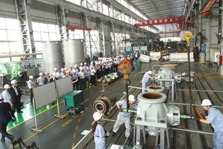 這次生產(chǎn)革新大會的目的是加速推進(jìn)荏原集團內(nèi)部各工廠的生產(chǎn)革新活動的開展,目標(biāo)是生產(chǎn)周期減半、庫存減半、最大限度地提高生產(chǎn)效率,降低成本,增強企業(yè)競爭力。通過生產(chǎn)革新活動,達(dá)到從現(xiàn)場改善提升到管理系統(tǒng)改善、人的改善的目標(biāo),使“產(chǎn)品制作”流程優(yōu)化。在這次大會上,公司總經(jīng)理王正軍向與會代表介紹了EMZ的經(jīng)營發(fā)展?fàn)顩r,并帶領(lǐng)與會人員參觀工廠,詳細(xì)介紹了生產(chǎn)革新的進(jìn)展情況。